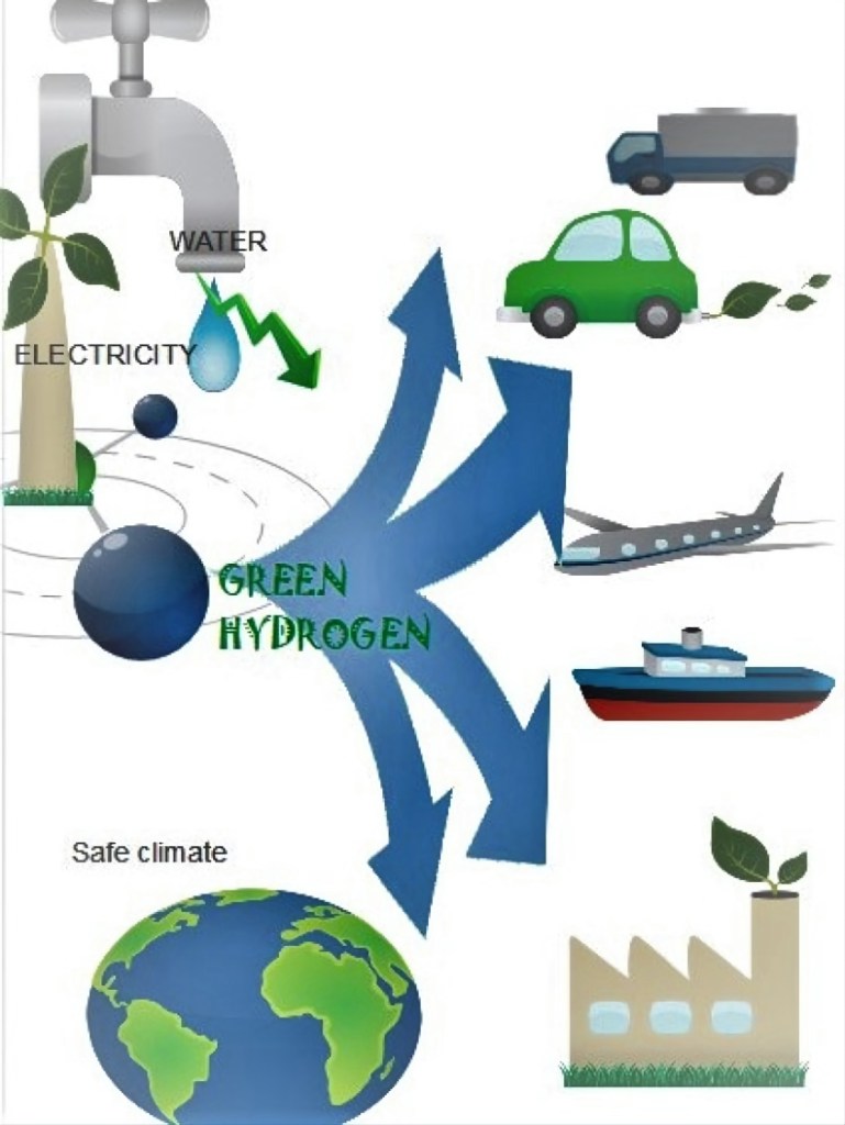 Green Hydrogen produced using solar electricity anywhere where sunlight and water are available